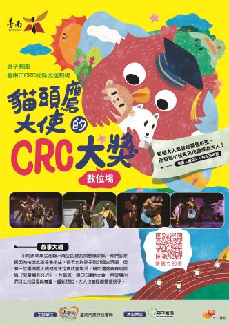 為營造友善兒少地方生活圈,持續促進兒少及成人在日常事務積極考慮、落實《兒童權利公約》所載之權利,臺南市政府社會局委託豆子劇團製作「貓頭鷹大使的CRC大獎」公播版影片,藉由深入淺出的表演方式、淺白易懂的對白語彙、感人的情節與熱鬧的歌舞,讓兒童權利得以在故事演繹的形式中有深度地傳遞,潛移默化地影響社區內的兒少及其照顧者,達到跨世代間的共好及共融日常。